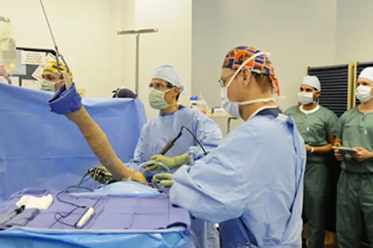 Medical education opportunities extend beyond the lab setting. This program allows physicians to visit state-of-the-art facilities across the US and EMEA to observe the latest technologies and surgical techniques in action. Physician instructors guide observers through complex minimally invasive and arthroscopic procedures, demonstrating the use of Arthrex products in a live setting.